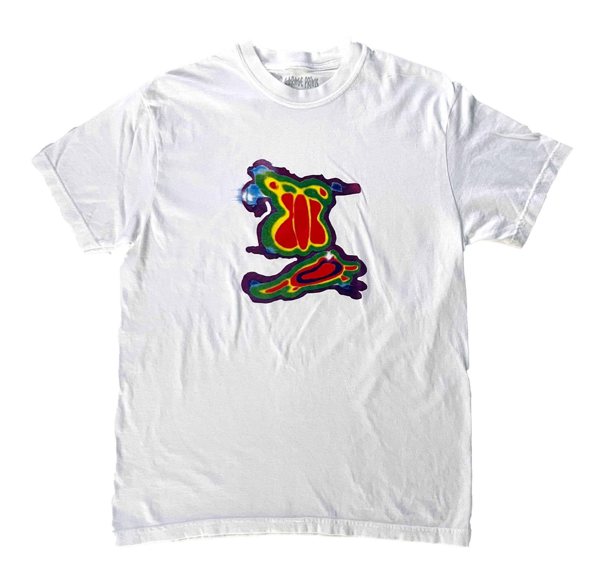 Front print with yellow, magenta, and cyan ink to create a gradient of colors. Printed on comfort colors blanks. Designed by Marley Humphrey :)