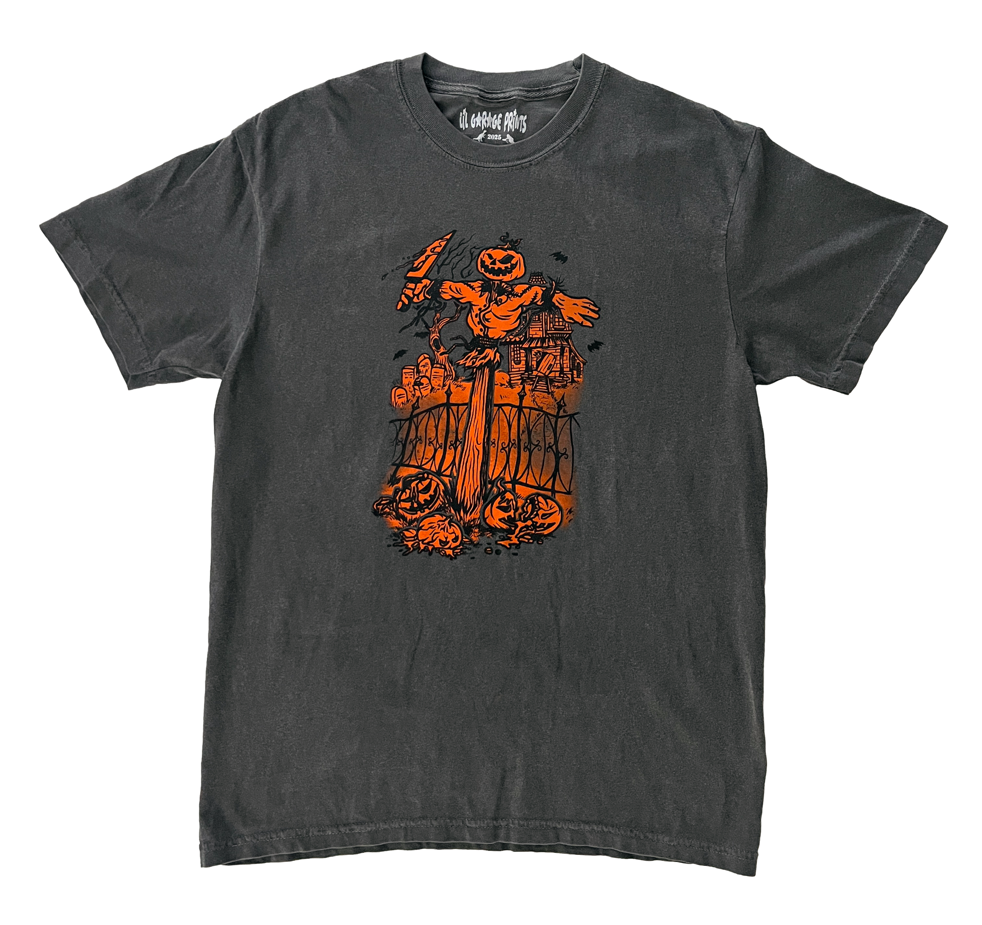 Halloween is year round here at LGP. Front print in orange and black ink, printed on comfort colors blanks. Designed by Dustin Kefaliotis :]